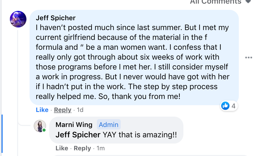 I think the thing that stands out the most about WGM is how I can get the girl by being the best most authentic version of myself. She teaches skills that are in alignment with being a good person. I don't have to be a person I hate to be good at women.